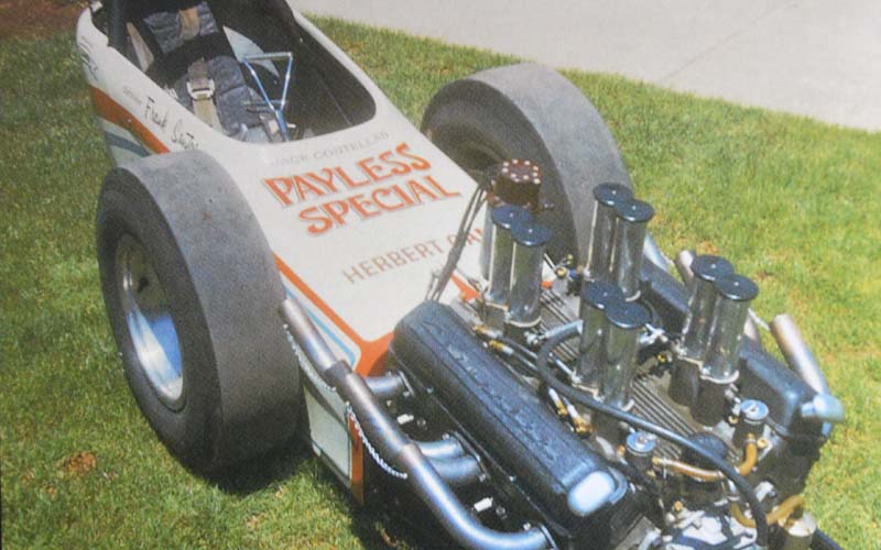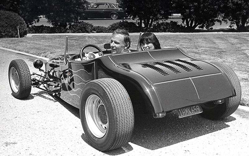 As a child I built model cars, then U-control airplanes. That’s where I won my first contest for top speed with a very small plane. The same style can be seen in all my future race car designs. In high school I started getting into dragsters with my first one being a very fast ’40 Ford coupe with a 3/8 x 3/8 flathead. Then I built a nitro-burning flathead-powered Crosley with a chopped and shortened slingshot coupe with a fiberglass nose. This was my first introduction to fiberglass. My Crosley took four first place trophies with one being for best looking car. Then I built a series of very small dragsters, which all set records. In the '50s and '60s was a period of time where there was rapid innovation and great freedom of expression in drag racing.