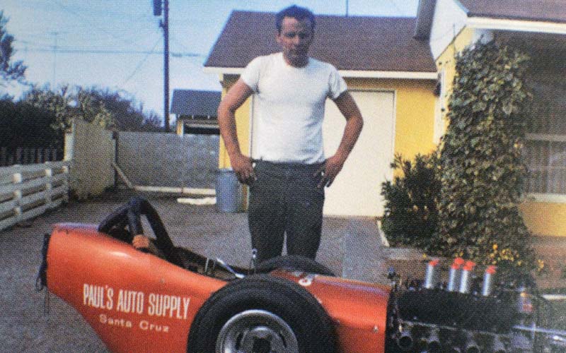 I was born on July 11th 1935 and raised in Santa Cruz, CA. I grew up in the hot rod movement and can remember my mother telling me that when she was pregnant with me she could hear wrenches clanking together in her stomach.