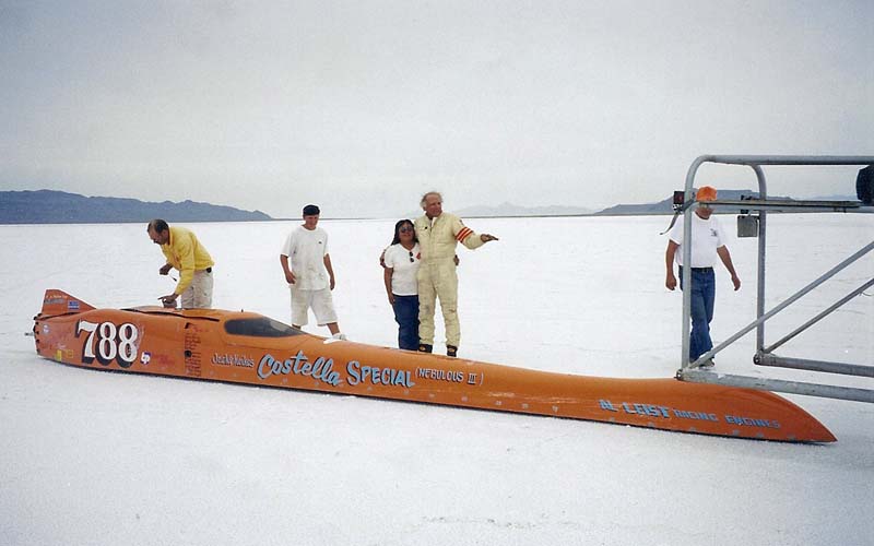 Jack Costella and the Nebulous Theorem team have set the most land speed records in the world to date with over 140 records. Jack has achieved being in the 200 MPH Club at El Mirage, Muroc, and Bonneville. With also being in the 300 MPH Club at Bonneville. Jack has also been inducted into the Dry Lakes Racing Hall of Fame.